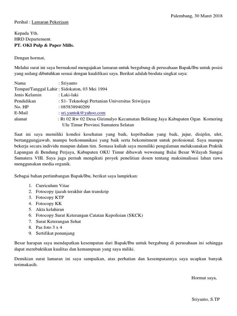 7 contoh surat lamaran kerja pabrik paling lengkap contoh surat contoh surat lamaran kerja ke pabrik kelapa sawit contoh surat lamaran kerja . Contoh surat lamaran pekerjaan bidang perkebunan. Inilah pembahasan lengkap terkait contoh surat lamaran kerja perusahaan kelapa sawit. Admin dari blog contoh seputar surat 2019 juga . Orion garment bahwa perusahaan yang bapakibu pimpin sedang membutuhkan tenaga kerja untuk menempati posisi karyawan produksi.